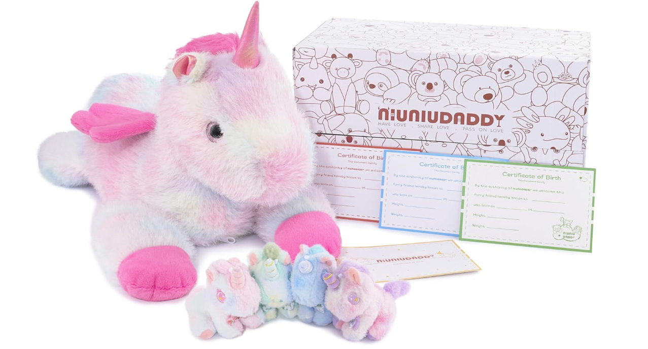 Unique Design: This adorable unicorn plush toy featured with a small babies , creating a fun and interesting look. Its vivid expression and charming design make it a fantastic choice for red panda lovers.