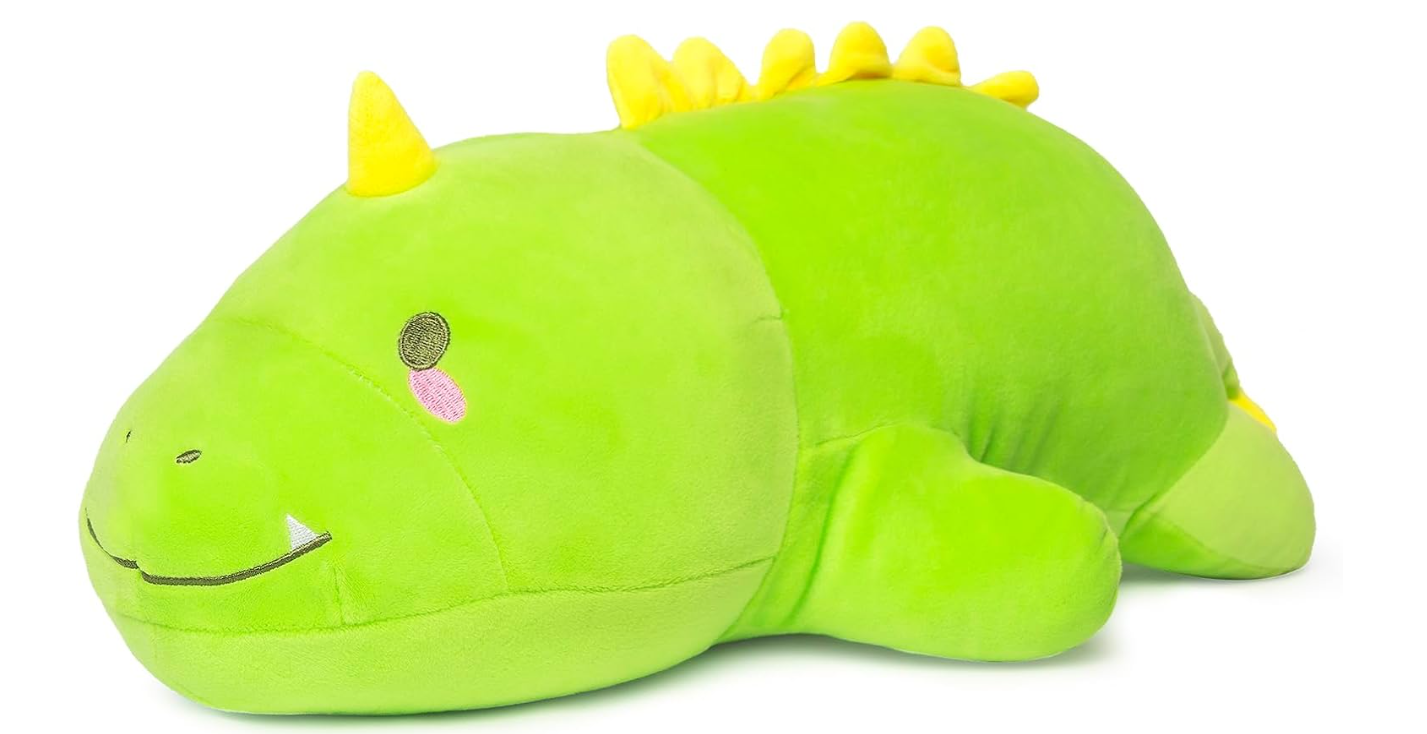 Measuring 19 inches long and weighing 3lbs, this dino plush toy is just the right size to serve as both a body pillow and a cuddly companion. Its perfect size makes it ideal for both kids and adults alike.